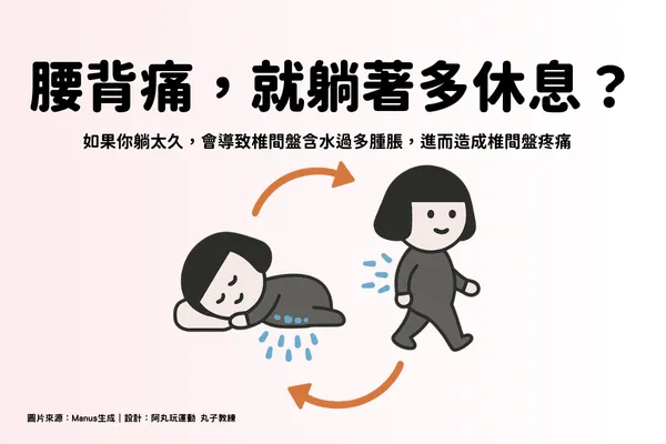 但如果你躺太久,會導致椎間盤含水過多腫脹,進而造成椎間盤疼痛。