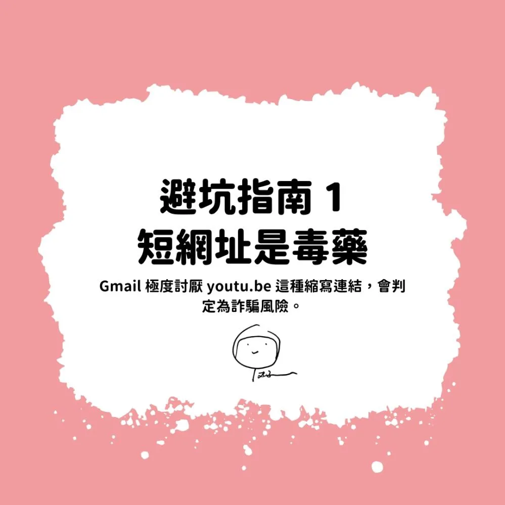 Gmail 的過濾器,對這種縮寫連結,極為敏感。認為其具有詐騙風險。只要信中出現一個這類連結,整封信就極可能被丟進垃圾桶。