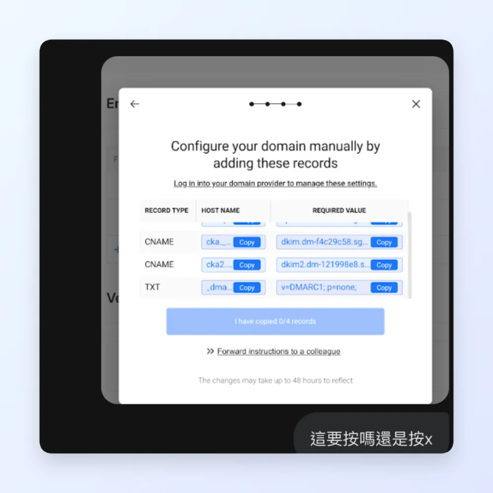 在 Kit 後台完成網域的 DNS (VSD) 紀錄設定,建立合法的寄件者身分。