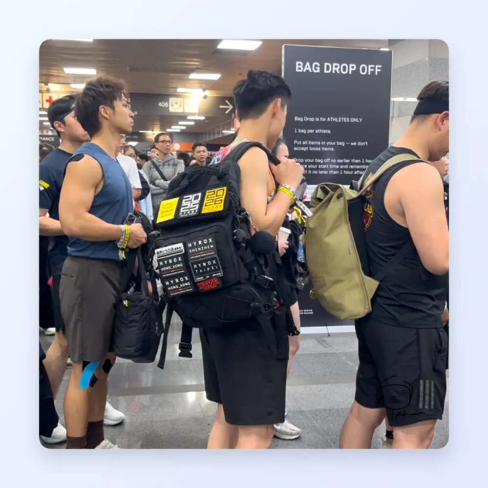 這個人的包包,都是hyrox參賽者才有的徽章