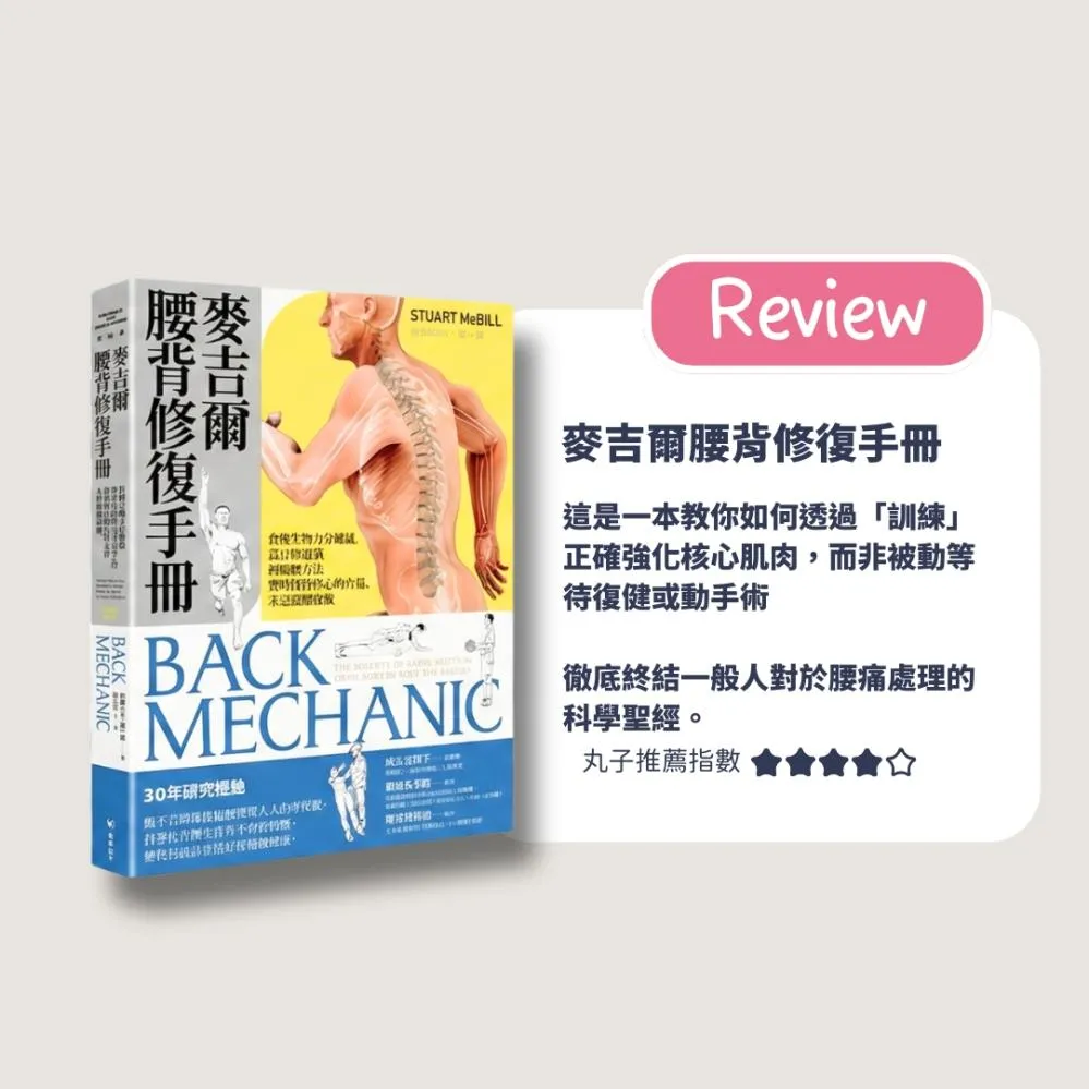 這是一本教你如何透過「訓練」正確強化核心肌肉,從根本改善腰背痛的問題。而非被動等待復健或動手術,徹底終結一般人對於腰痛處理的科學聖經。
