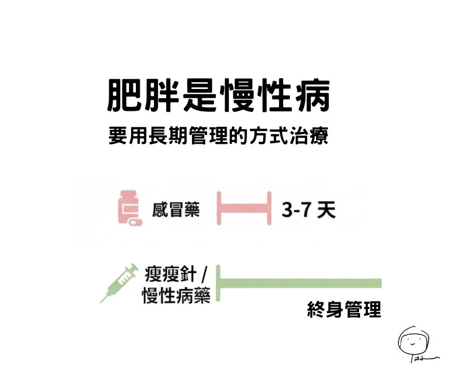 以前,我也是誤把瘦瘦針,當成短期使用的藥物,沒想過它可以長期使用一年、三年,甚至是終身。