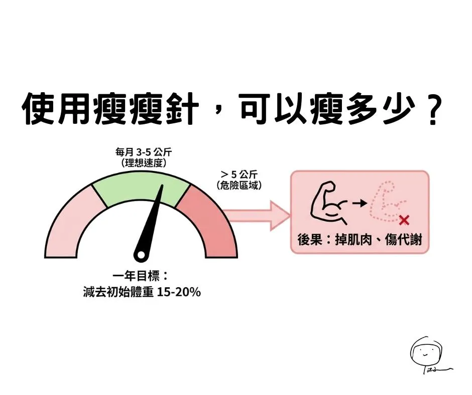 速度過快(如每月超過 5 公斤)極易導致肌肉大量流失,反而損害基礎代謝。