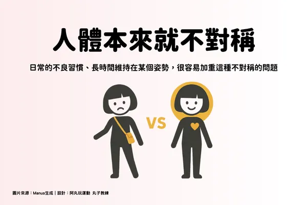 但我們也要留意,如果長時間維持在某個姿勢,很容易加重這種不對稱的問題。