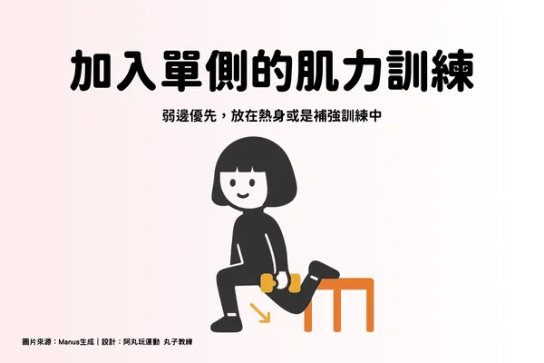 所以,我會把單側訓練,放在熱身裡;或是在完成主要訓練後,當作補強訓練動作,